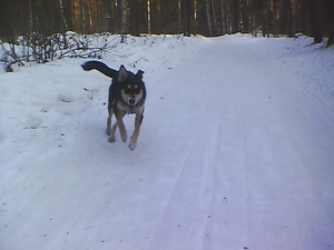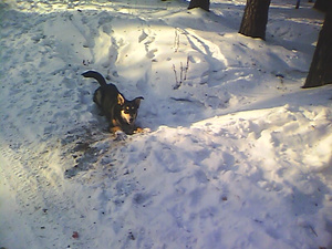 Вот где она себя хорошо чувствует.. бегает по кустам, по сугробикам.. носится между деревьев.