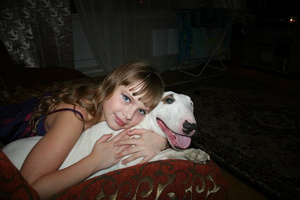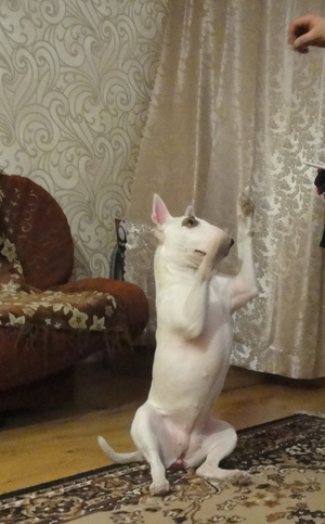 Бультерьер Кира, 2 года. Очень дружелюбная и позитивная девочка