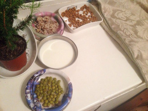 мы рискнули и поставили живую ёлку... В тот год обошлось: ёлку он не уронил, дождика тоже не наелся..