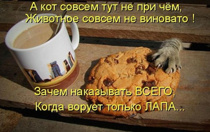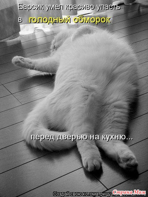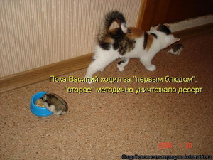 Думаю, это сюда) Вчера приезжаю, а на встречу мне исполненная решимости мама..твои коты, говорит, слишком жирные, я их на диету посадила..
