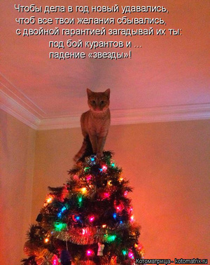 Все ёлочные игрушки у Вас небьющиеся, так как они обязательно будут использоваться в качестве кошачьих;