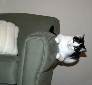 Вы находите забавным, когда кошка забирается по Вам на плечи, используя когти. А как ей быть-то? Не залезать что ли?;