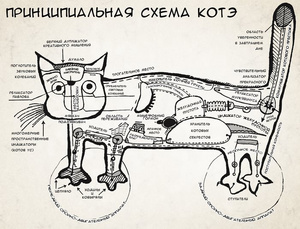 КОШКА приспособлена для работы при температуре окружающей среды 20°C (+ 3°). Для ее первичной установки используйте тихое помещение с небольшим количеством людей. Откройте транспортировочный контейнер и подождите, пока сработает программа автораспаковки. Инициализация программы самообучения catfind начинается непосредственно после выхода из контейнера через видео- и обонятельные датчики, расположенные на лицевой панели КОШКИ. В помещении должен быть предусмотрен источник H2O (в жидкой фазе, температура комнатная, чистота 99%), емкость с сухим гранулированным поглотителем исходящих данных, местоположение которого следует немедленно ввести в базу данных, на непродолжительное время установив КОШКУ в данную емкость.