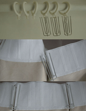 Есть такие меллические крючки для штор, которые четыре петельки превращают в одну. И очень красиво при этом шторы собирают. Вот такие. Я для такие тесьму широкую пришиваю.