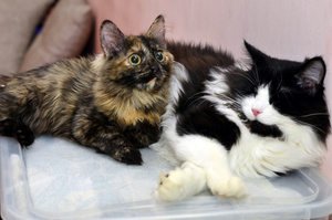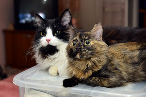 щенком она пришла к нам к взрослому коту 14 лет, но как чуть подрасла стала крупнее его - донимала
