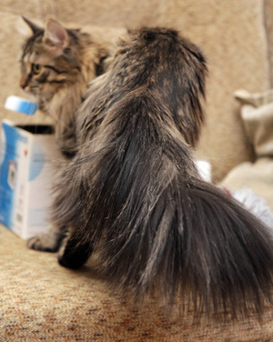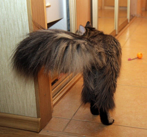 У нас есть еще один длиношерстный мальчик, похож на невского маскарадного, вот у того шуба шикарная , почти его не чешем, он никогда не скатывается, шерстка как шелк!