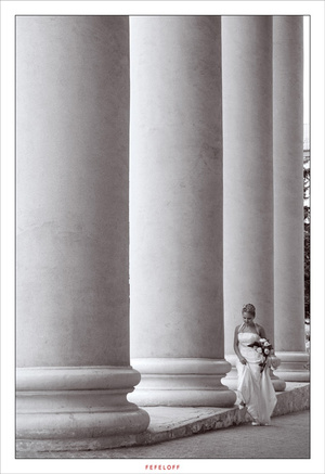 . В прошлом-позапрошлом году появился штамп, пришедший на смену "невестаналадошке" - Невеста и жених возле колонн ,один ближе другой дальше...Вот и у меня такая есть
