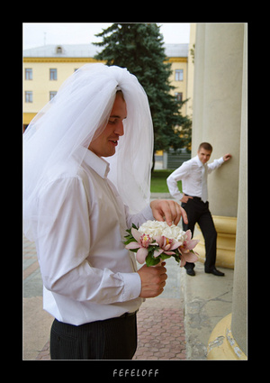 Саша, ну зачем же отрывать фату у невесты? И лепить ее на мужика или это жених? или гость? Хотя прикольненько.