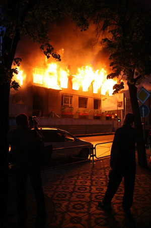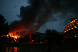 Народ, кто там в центре на пл. Ленина возле Оперного? Сейчас сообщили, что горит дом на 2 этаже возле магазина Подарки.