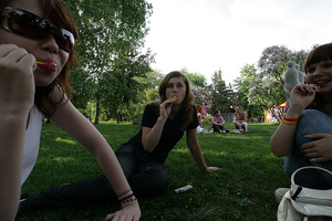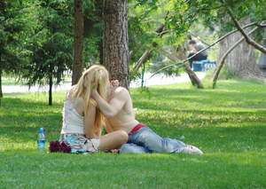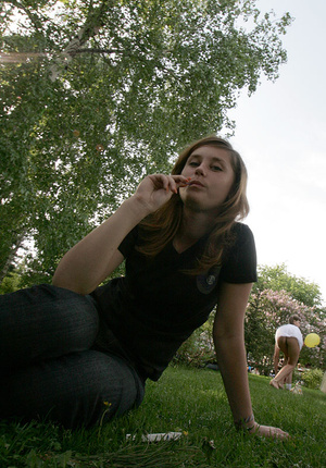Ну и одна девушка сосущаяя один чупа-чупс... и попа с головой на заднем фоне
