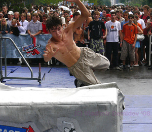 для тех кому непонятно - мальчик разбежался от меня и перепрыгивает эти два мягких мата