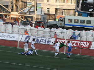 за наших радуются болельщики, которых с каждой игрой на стадионе все меньше и меньше...
