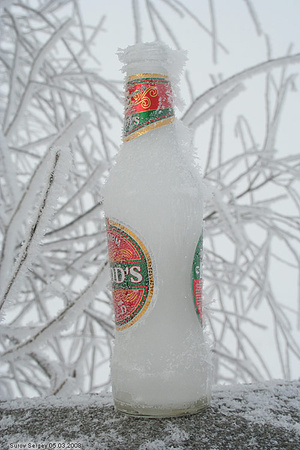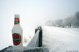 А еще холод не мешает пить на улице холодное пиво)))Нудо было диафрагму приоткрыть, чтобы размыть задний план... а так не понятно - что фоталось - бутылка или пейзаж