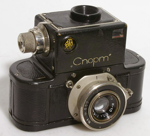 "Несмотря на нелегкий первоначальный период создания фотопромышленности в советской России, надо признать, что в некоторых фотографических разработках мы шли не только в ногу со временем, но и действительно перегоняли западные страны. К сожалению, как это нередко бывает в России, многие прогрессивные конструкторские идеи не находили дальнейшего развития или опытные модели не были поставлены на поток. Например, признается, что отечественный фотоаппарат "Спорт", выпущенный в 1936 году, был первой в мире однообъективной 35мм зеркалкой, хотя на это первенство также претендует германская Kine-Exakta 1936 года выпуска. Спустя полвека после появления камеры "Спорт" американский журнал Modern Photography писал, что "русские победили ведущие промышленные страны мира в изобретении наиболее важного типа фотоаппаратов ХХ века". От себя добавим, что "Спорт" был не просто первой зеркальной 35мм камерой в мире, но и первой кинопленочной зеркалкой с вертикальным (цельно)металлическим шторным затвором."