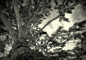 Комопозиции там и нет. Горизонт посредине, истукан посредине. Отвратительное кадрирование.