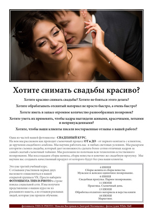 • Работа с моделью. Психологические аспекты. Автор на ваших глазах продемонстрирует нюансы работы с моделью, начиная от первого знакомства…и до самого интересного…