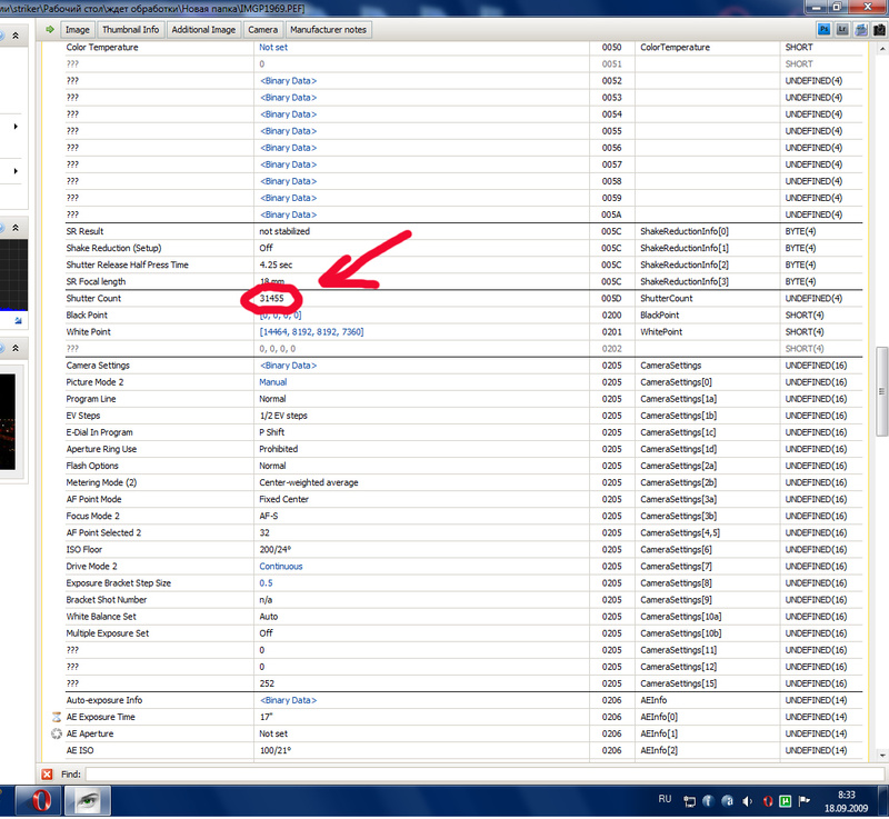White_Devil, скачайте программку photome, потом откройте в ней последний кадр и посмотрите реальный пробег аппарата.Уважаемая hellomoto! Прогу эту скачал. Хотел уточнить один момент по программе, пробег можно посмотреть по такому параметру как "File Index" ???