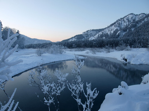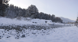 Катунь большей частью подо льдом.