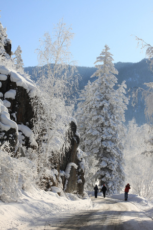 там, в Усть-Коксинском районе, учитывая высоту над уровнем моря около 1100 м, если даже и морозный день, солнце очень существенно "припекает". Зима как-то мягче ощущается...