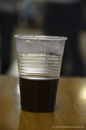 Стаканчик с кофе на столе, свет - несколько светильников дневного света далеко от стола,баланс белого на автомате, приоритет диафрагмы 5,6, авто исо (фотик поставил сам значение 2800!!!), 105мм (объектив китовый 18-105), выдержка 1/80, без вспышки второе фото - 100% кроп с первой фотографии, резкость наводилась на середину стаканчика, на фото с кропом - правая часть.