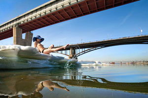 а у меня тож есть, где я в купальнике на песке, а сзади - льды