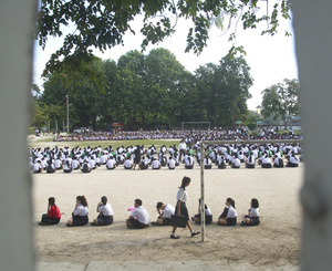 Школа в Тайланде. Начало учебного дня несколько необычно. ( для меня, по крайней мере). Каждый перед началом занятий все учащиеся усаживаются на огромной пришкольной площадке. Сначла воздается должное Будде, а затем традиционное действо, суть которого подружить всех учеников...
