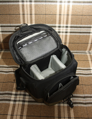 Описание: жесткий каркас, закрывается на клапан, крепление для штатива, количество отделений - 1, количество карманов - 3, формирующие перегородки на липучках, карман формата А4 -1.