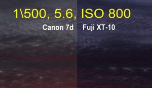 Ай-яй-яй.. я конечно и раньше замечал что-то странное, но вот сравнил два аппарата и увидел, что Дядя Фу задирает ИСО. Закат. Параметры сьемки на фото, снималось синхронно в одном ракурсе, фокусное 50, камерный жипег без обработки.