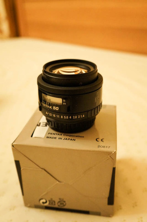 3. Pentax SMC FA50/F1.4. Покупался в "Техносити". Коробка, крышки - все в наличии.