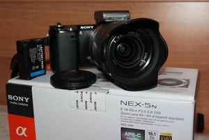 1. Sony NEX 5NK (Kit 18-55/ F3.5-5-6). Покупался в "Техносити", пробег 2500. Коробка, крышки, провода - все в наличии. Гарантия до 15.12.2013 . + Запасной аккумулятор (китайский дубликат)