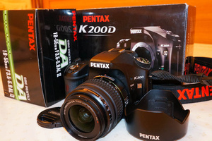 2. Pentax K200D Kit 18-55 AL-II . Покупался в "Техносити", пробег чуть меньше 5 000. Коробки, крышки, провода - все в наличии.