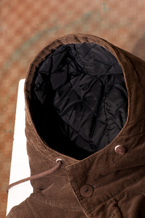 капюшон толстый, имеет, оч. грубо, форму чаши, и если даже моя кепка если ее положить аккуратно сохраняет свою форму, то толстый капюшон и подавно.