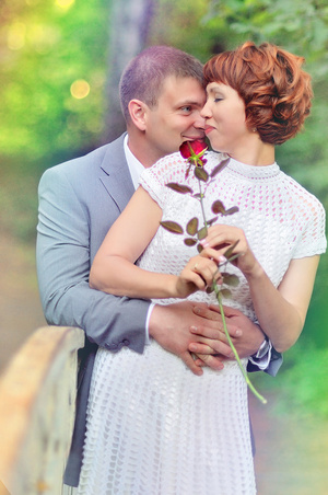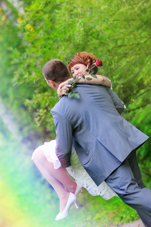 Что еще бросилось в глаза, так это проблемы с композицией кадра. Надо подучить матчасть. И фотошоп тут уже не причем. Ваша любимая динамическая диагональ в обоих показанных случаях не к месту. Перегнули палку. В первом случае создается ощущение, что молодая пара должна скатиться вниз по слишком наклонной плоскости, а во втором случае жених несет в яму свою невесту. Ну, как бы, женились они не для этого. Рановато еще.