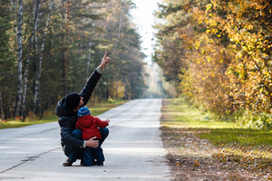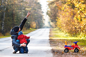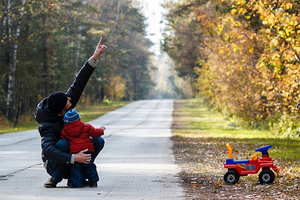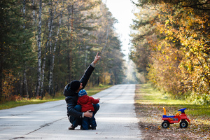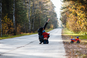 А я считаю, что первый вариант с машинкой был лучше. Теперь кадр заваливается влево. Машинка его уравновешивала. И еще. Ребенок стоит к камере спиной и его практически не видно. Лишь только машинка делает кадр "детским", говоря, что этот малыш только что слез с этой машинки и подошел к папе.