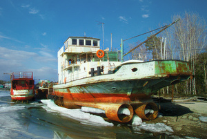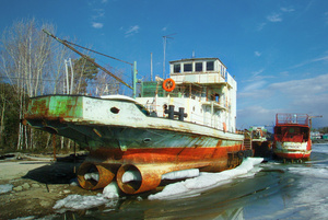 томительное ожидание лета этими старыми кораблями. Они все ржавые, но они мечтают вновь поднять свой якорь и уйти из этой ненавистной зимней стоянки.А правый снимок точно об этом?