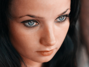 Про портрет - лооооооб. Все, стопор. Дальше уже не могу воспринимать снимок. Видимо, снято на полтинник на ФФ или что-то подобное, в итоге перспективные искажения налицо, точнее, на лбу. Итого - какая-то инопланетянка с огромным лбом и тонусенькой шеей. А ведь такие глаза у девушки... ммм... По цветам, из красного чуток зеленый бы убрала, но, может, у меня монитор криво показывает.
