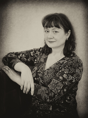 Теперь о портрете. Вот давайте вы посмотрите на него моим взглядом. Сидит девушка. Глаза есть, но взгляда не видно. Огромный выпуклый лоб, как у инопланетянки, огромная голова, и тонюсенькая шея. Пластиковая кукла с блестящими глазами из советских магазинов.