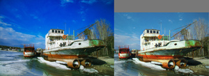 если по-русски, то может небо и было "пересиненным", но ведь оно собака круто взаимодействовало с красным задним катерком и красноватой ржавчиной на переднем катерке, еще и перспективу давало и левая часть неба и берега тож была нужна и для этой перспективы тоже, а теперича, после махинаций, это просто "протокольная фотка" для местных оппозиционных СМИ, дескать, как всё плохо в Затоне, ну и в Чкаловце тоже, а ну да и виноват будет в итоге Лок*ть / Зн*тков/ Гор*децкий, нужное подчеркнуть, какая уж тут теперича сказка, сплошная политика !