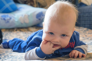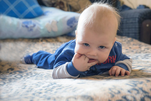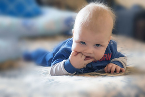 Я понимаю, о чем вы говорите. Вам просто кажется, что ребенку в кадре как бы тесно, словно он пытается пролезть или смотреть через маленькое окошко. У меня такое же ощущение. Поэтому, чтобы ребенка не мучить в будущем смотрите, каким будет у вас первый план. Ну или чистите в фотошопе. Мне тоже понравились беленькие волосики на макушке и не хотелось бы их убирать из кадра. Они очень оживляют и украшают снимок.