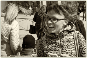 1-ая: в упор зачем-то тётю фотал, еще и с высоты своего гигантского майклджордановского роста, как вечноспешащий фотографер СМИ, у которого в толчее напирающих коллег выбора не было, уже абы как фотнуть бы, пока герой в лес не убёг, но выбор ведь был (!), может надо было малость отойти (ну или отзмумиться) и малость присесть! А если сюжет фотки был отнюдь не про тетю на первом плане, а про ветер в волос у обоих тёть и у третьей тети справа, то нет акцента на это, и чб, действительно, в этом тоже сыграло не последнюю роль, в чем соглашусь с предыдущим оратором, цвет может мог бы спасти этот сюжет!