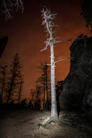 Небо цвета мяса, перевернутый нос в кадре слева, невнятные ветви справа, блестящая скала, резкие тени, искореженная перспектива, непонять что с ЗП, и концептуально-нависающие на верхние углы, слева - сопли веток, справа- куча кроны...