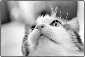 1. Кадрирование с учетом правила третей. Благодаря этому взгляд вашей кошечки стал более заметным и выразительным. Он сразу бросается в глаза. Необычный, осмысленный взгляд.