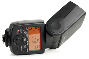 Ведущее число 58 м. HSS (FP) для съемок на выдержках до 1/8000. Поддержка режимов TTL, E-TTL. Ручная регулировка мощности. Угол освещения 24 - 105 мм. Поворотная головка: вверх 90 градусов, по горизонтали 270 градусов. Меню управления совместимое с камерами Canon. Время перезарядки 3 c. Питание: 4 АА.