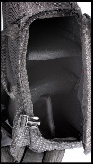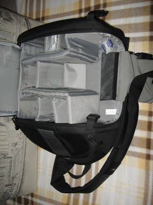 Отделения сумки: 3 (основное отделение с регулируемыми перегородками, боковой сетчатый карман, внешнее отстегивающееся отделение для аксессуаров и/или коммуникатора/плеера, солнцезащитных очков; карман для карты памяти внутри основного отделения).