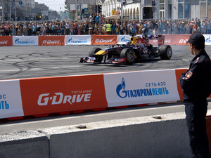 "Красный бык в тесной загородке под присмотром полиции" - трасса была так же тесна болиду, как этот снимок...