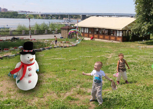 да я слишком здоровенного снеговика впихнул)) любой предмет по размерам меньше основного, то есть в данном случае ребенка, пойдет.. кустик, то же скопление одуванчиков поплотнее.. для уравновешивания композиции.. хотя в реальной жизни конечно никто не станет искать этот кустик и тем более снеговика)))
