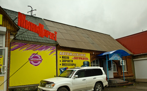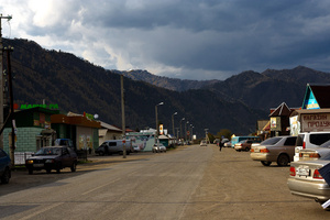 Чемал, райцентр, местный супер-пупер-маркет Мария-Ра, за ним сетевой ларек с маральей косметикой.