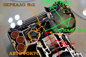 Так же тряпочкой аккуратно без давления протираются оба зеркала переднее и заднее автофокуса. если автофокус не чистить то со временем камера будет мазать.Вот с этого места поподробнее.