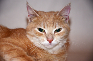 много ли здесь красного?А в жизни фон, на котором кот сидит, какого цвета?