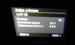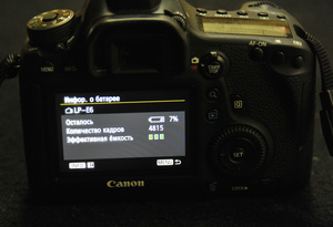 давно делал обзор на батарейки LP-E6 вот ТУТНу там всякая вольт-амперная техно-хрень, извиняюсь за выражение ) Про настрел кадров с одной зарядки нема, хотя про видео-режим понятно. Мне кажется, пользователям интересней реальное количество фоток со свежей и уставшей батареи, чем физика и химия. В моем варианте все конкретно и наглядно - см. фото